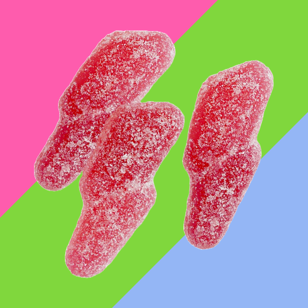 These bright red lightning bolts by BUBS are packed with fruity freshness combined with an energizing sour flavour. Dusted in sour sugar, these jelly treats have a sour kick with every bite. Suitable for vegans, these fruity skulls can be enjoyed by all - why not package into smaller bags with other vegan pick 'n' mix sweets to create unique treats.