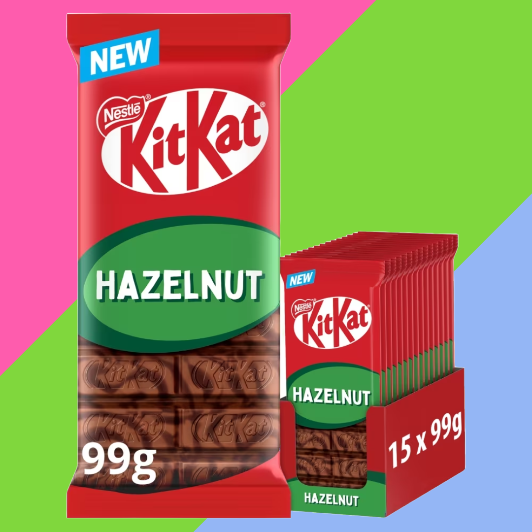 Discover a delicious new way to break! Snap into a delicious NEW 99g KitKat® Hazelnut Sharing Bar with crispy KitKat® wafer, hazelnut flavoured filling and covered with thick, milk & dark chocolate marbled swirls. A new KitKat® experience to delight your senses. Have a break, have a KitKat®. Your break is part of an innovative programme 'Breaks for Good', that is helping cocoa-farming families to earn more money, planting more trees and helping kids into school.