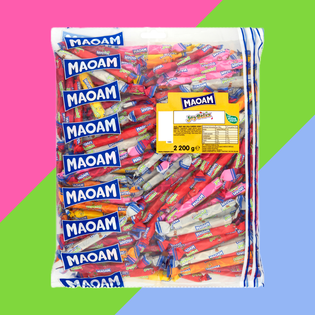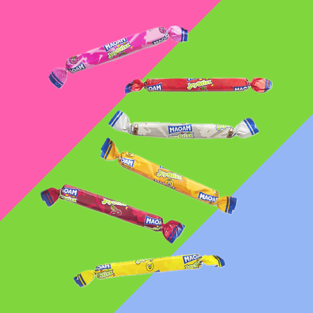 Enjoy the chewy deliciousness of JoyStixx in the typical fruity MAOAM flavours cola, strawberry, raspberry, cherry, orange and lemon. Thanks to the extra long stick shape, the fun is never done!