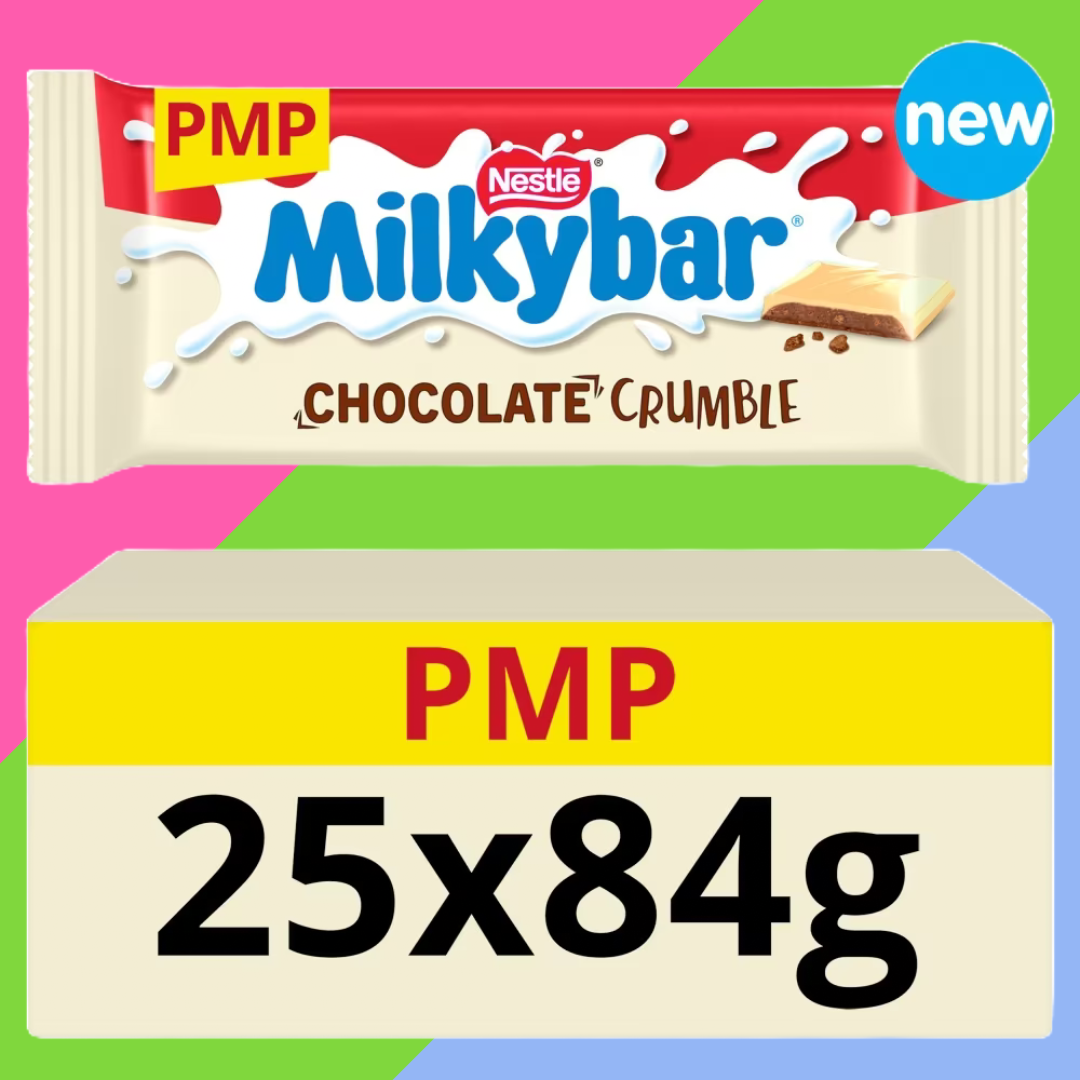 Milkybar Chocolate Crumble White Chocolate Bar 25x84g PMP £1.65