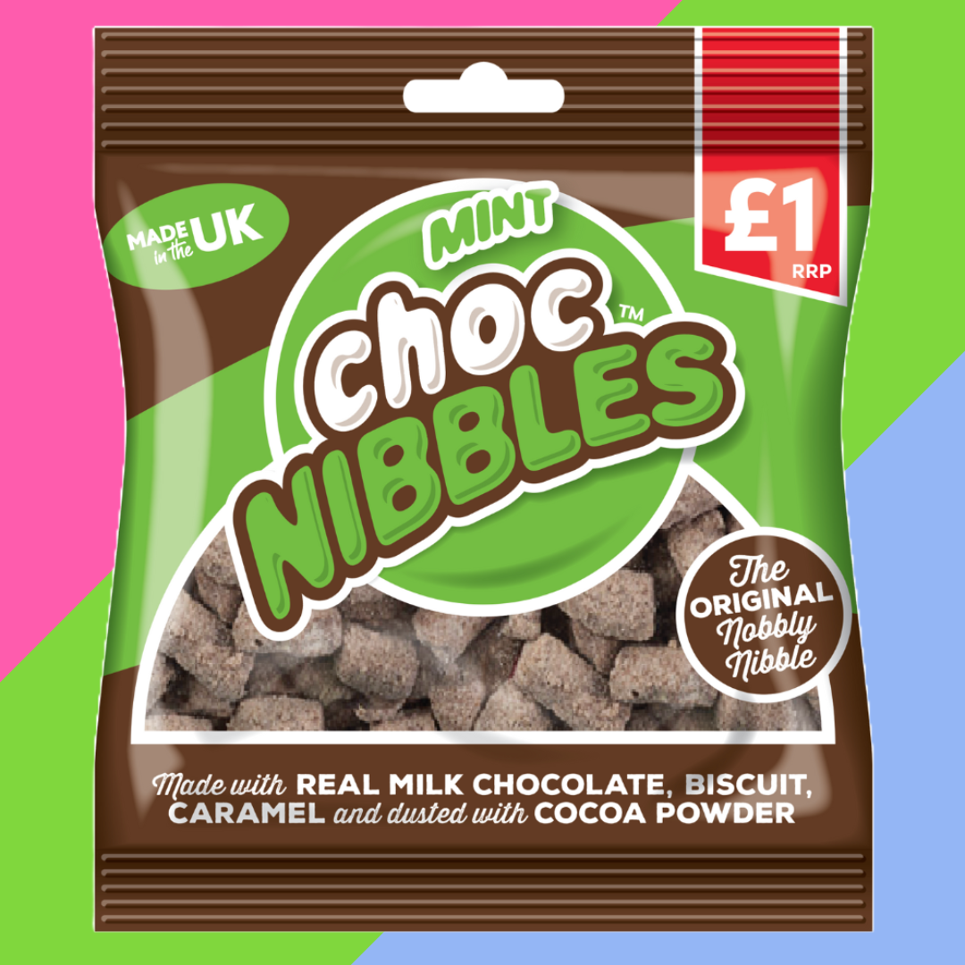 Choc Nibbles have been a favourite for generations and now they've got a mint twist. The original nobbly nibble with a hint of mint flavour, made using real milk chocolate and caramel dusted with delicious icing sugar, a mix of flavours that can't be missed. These 135g bags of unique chocolate delight are perfect for sharing with family and friends or as a self-eat treat to yourself. Choc Nibbles and its variants are always a popular choice, with chocolate and retro-sweet lovers and with an outstanding £1 price mark, they're sure to be flying off your shelves.
