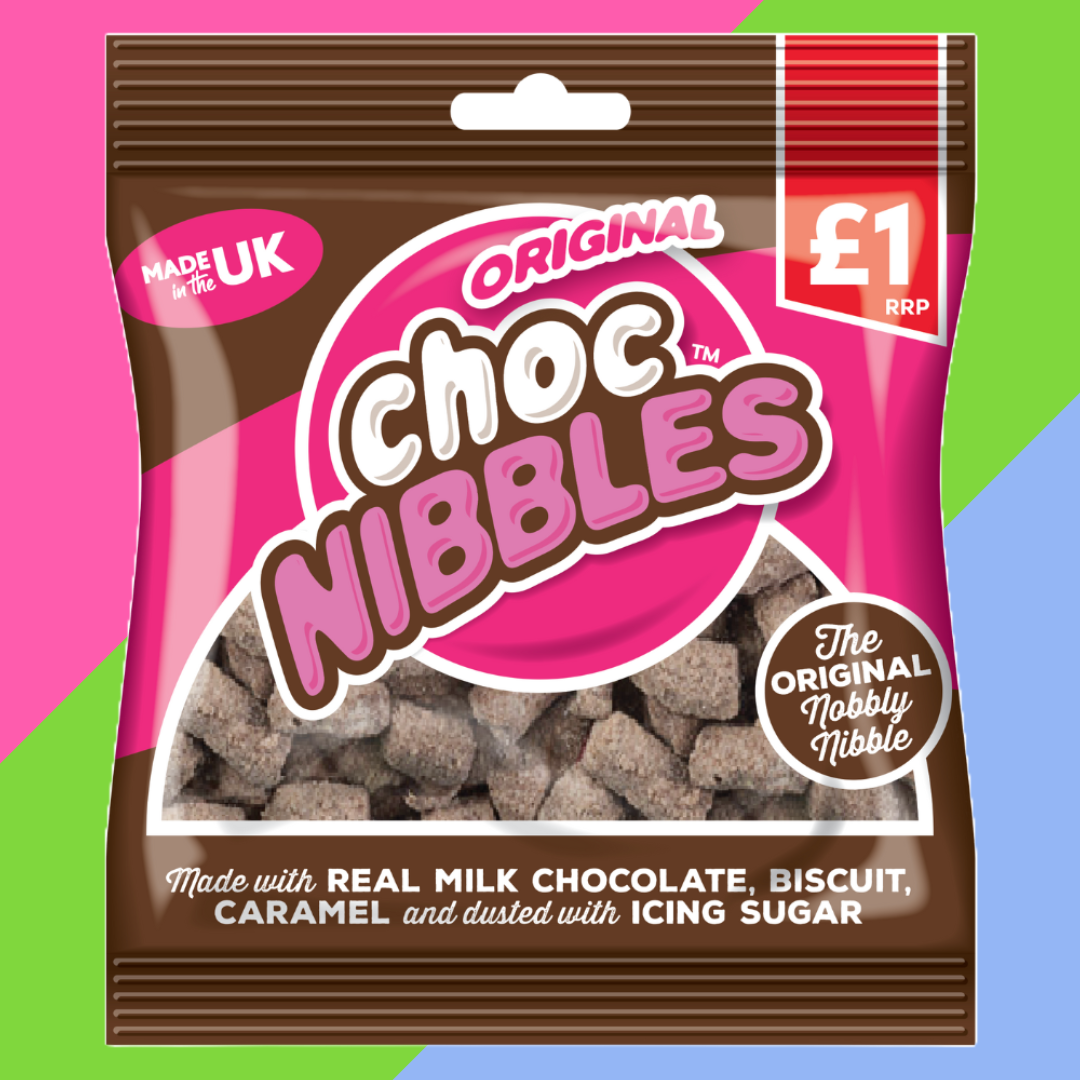 Choc Nibbles have been a favourite for generations. The original nobbly nibble made using real milk chocolate and caramel dusted with delicious icing sugar, a mix of flavours that can't be missed. These 135g bags of unique chocolate delight are perfect for sharing with family and friends or as a self-eat treat to yourself. Choc Nibbles and it's variants are always a popular choice with chocolate and retro-sweet lovers and with an outstanding £1 price-mark, they're sure to be flying off your shelves.